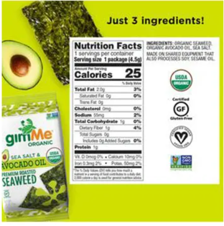 Gimme Seaweed Snacks Sea Salt Avocado Oil 6x5g