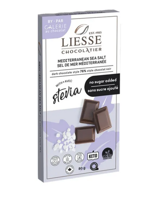 Liesse Chocolate Dark Chocolate Mediterranean Sea Salt No Sugar Chocolate Bar - 80g