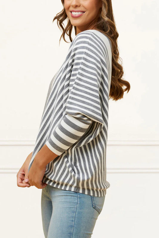 Montreal: VALERY RELAXED KNIT SWEATER BOLD STRIPES (GREY Size S)