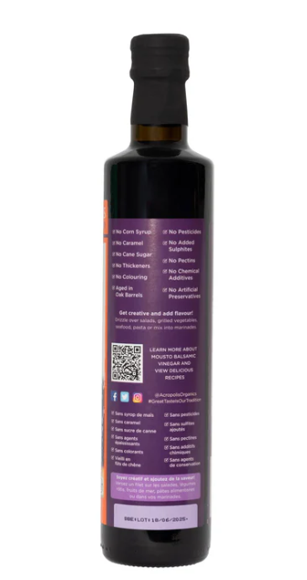 Created from an ancient recipe, Acropolis Organics Mousto Balsamic Vinegar is made from Romeiki grapes to deliver a taste as rich and dynamic as Crete's history and culture.