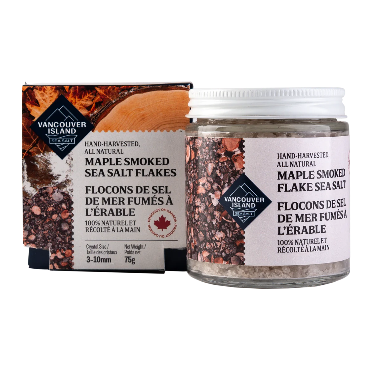 VANCOUVER ISLAND SEA SALT MAPLE SMOKED SEA SALT FLAKES (75G JAR)