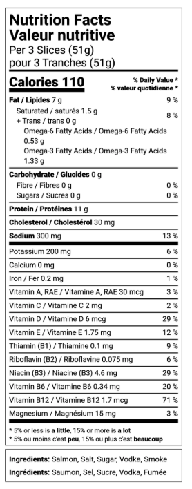 - Made from fresh Canadian Atlantic Salmon, raised without antibiotics, hormones or pesticides.